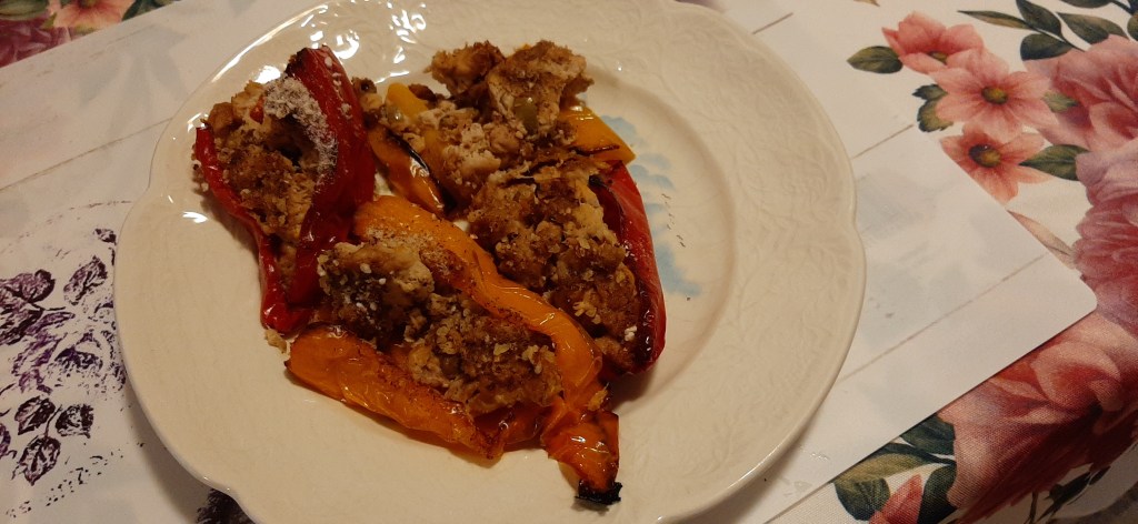 La giornata stranamente era soleggiata, il clima era gradevole e l’ intero pranzo con la collaborazione di entrambe è risultato essere gustoso in “tutte” le sue portate, i peperoni diversamente ripieni davvero squisiti, in più c’ era la gioia finalmente di poter trascorrere un pò di tempo insieme in tutta tranquillità a differenza di tutti questi mesi che ci davamo appuntamento al supermercato a fare la spesa con i nostri carrelli una dietro all’ altra.